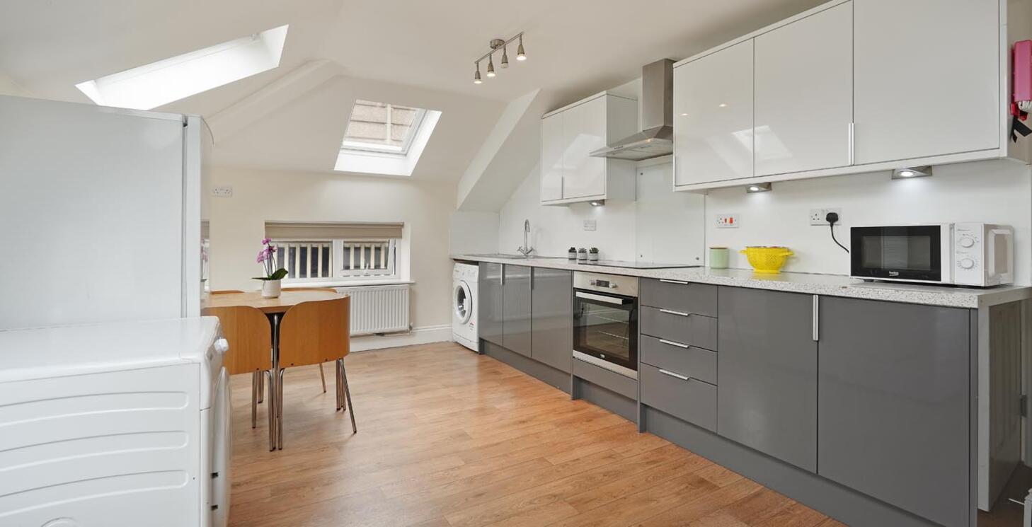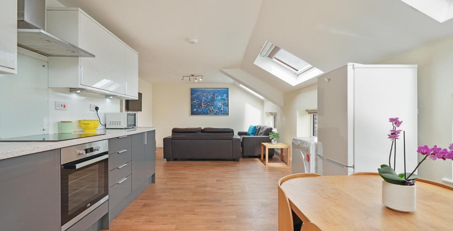 This is an attic flat which gives it a real loft style feel